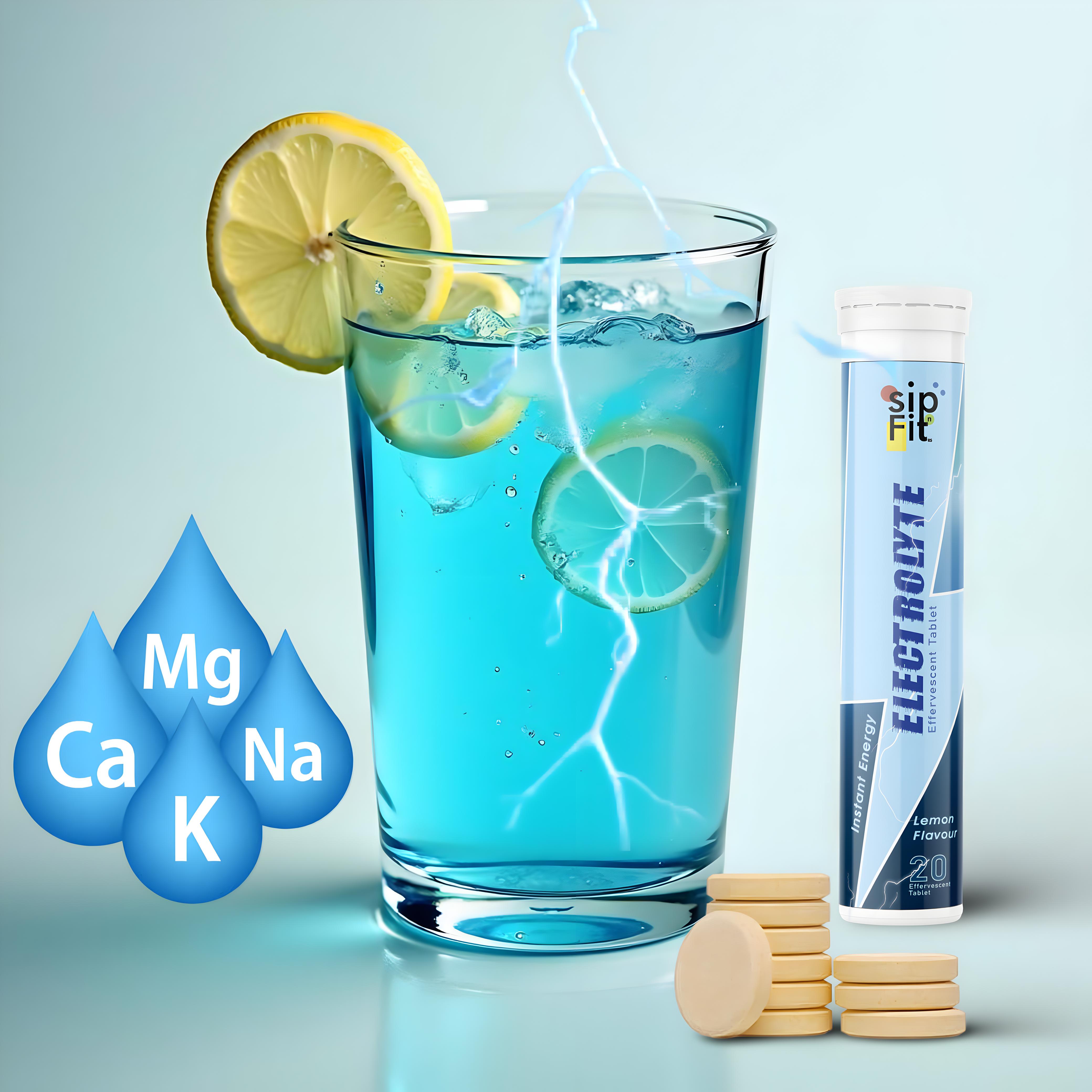 SipFit Electrolyte Effervescent Tablets are designed to replenish lost fluids and essential minerals, ensuring rapid hydration and instant energy. With a refreshing lemon flavor, these tablets dissolve quickly in water, making them ideal for athletes, fitness enthusiasts, and those needing quick rehydration after physical exertion or illness.