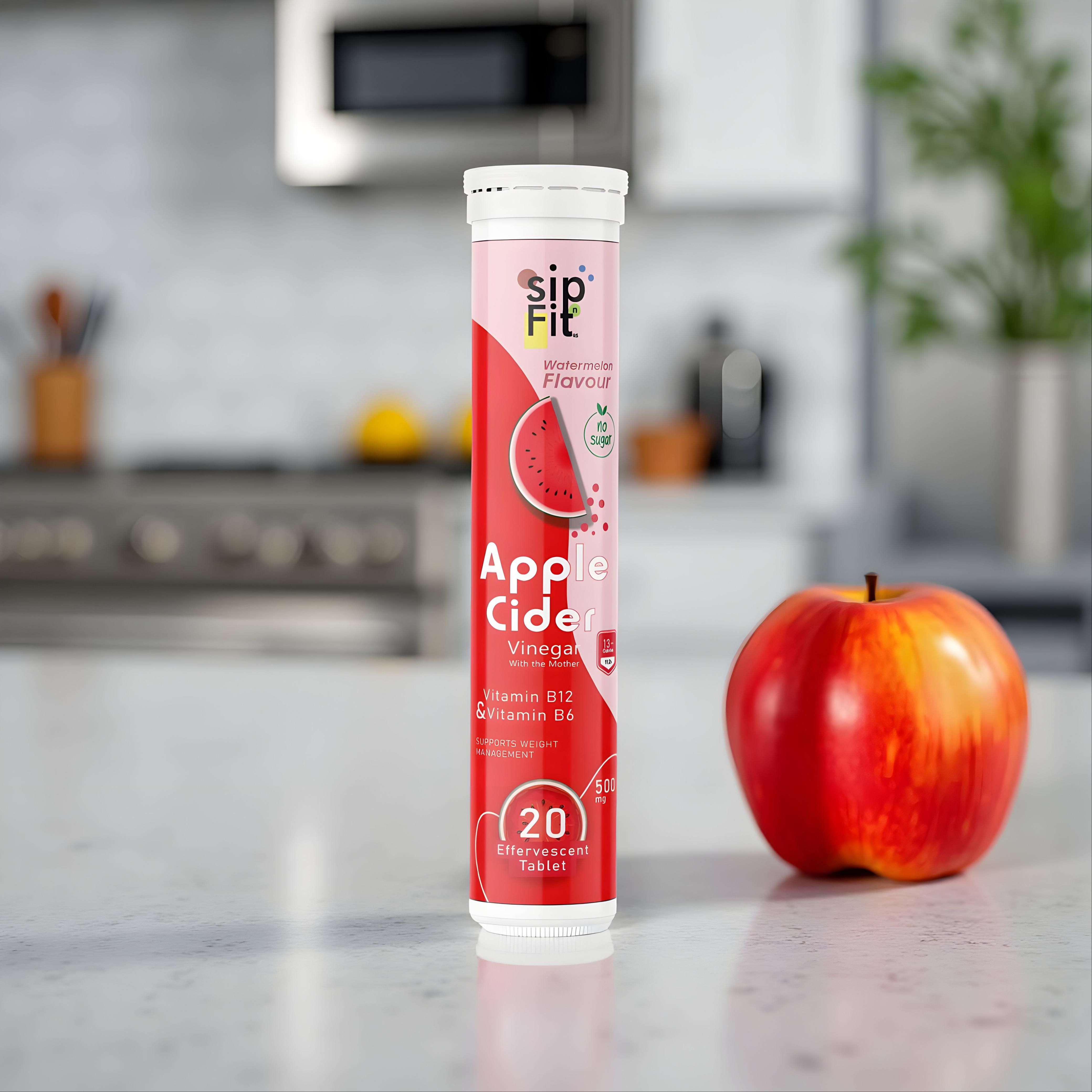 SipFit Apple Cider Vinegar Effervescent Tablets (Moringa & Green Apple Flavour) are a convenient and tasty way to enjoy the benefits of apple cider vinegar and Apple Cider Vinegar Effervescent Tablets (Watermelon Flavor) offer a delicious and easy way to incorporate the benefits of apple cider vinegar into your daily routine.