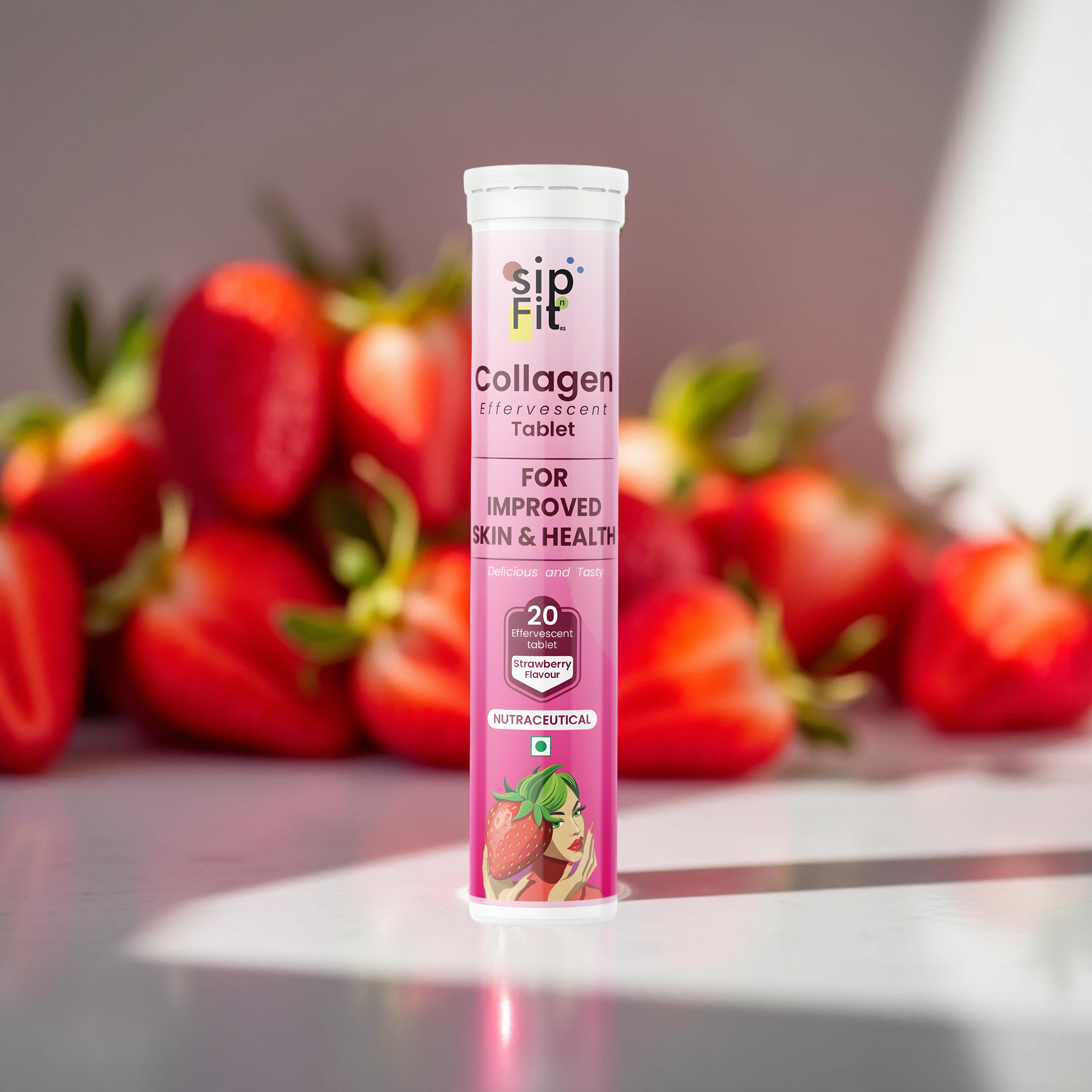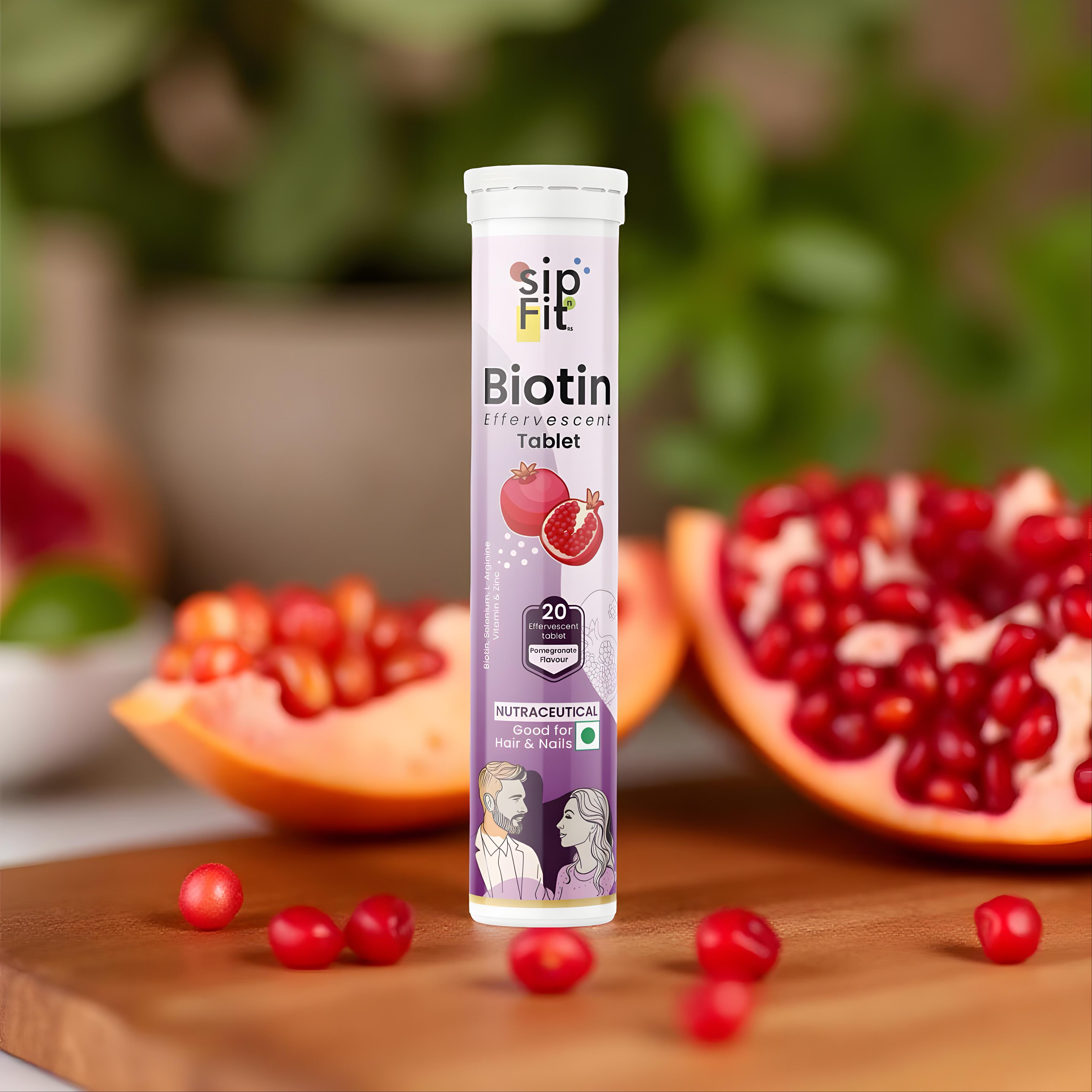 SipFit Collagen Effervescent Tablets (Strawberry Flavor) are designed to promote skin elasticity, hydration, and overall health, and Pure Shilajit Effervescent Tablets (Blueberry Flavor) are formulated to enhance strength, stamina and SipFit Biotin Effervescent Tablets (Pomegranate Flavor) are specially formulated to support hair, skin, and nail health while promoting overall wellness.